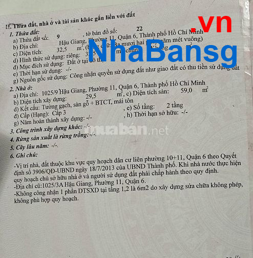 - hẻm sạch sẽ, tuyến đường Hậu Giang đầy đủ tiện ích, giao thông thuận tiện và sinh hoạt. - Vị trí: hẻm 1025/ Hậu Giang, Phường 11 , Quận 6, TP. HCM.- Diện tích: 4.5 x 7m.- Kết cấu: 2 tấm- Giá: 3.2 tỷ (thương lượng).Liên hệ: