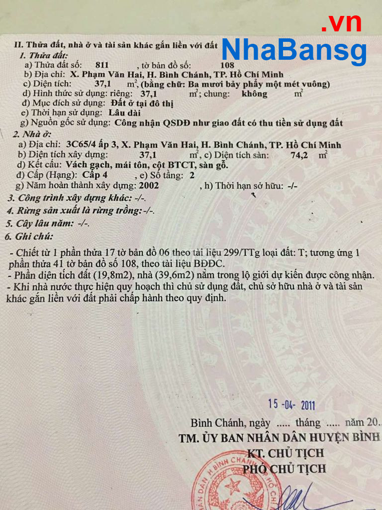 Chính chủ bán nhà 3C65/4 Ấp 4 Xã Phạm Văn Hai Bình Chánh . Ngay chợ cầu xáng. - diện tích: 4x10m CN:40m2 Nhà 1 Lầu Giá : 1 tỷ 990. Lh Trung.