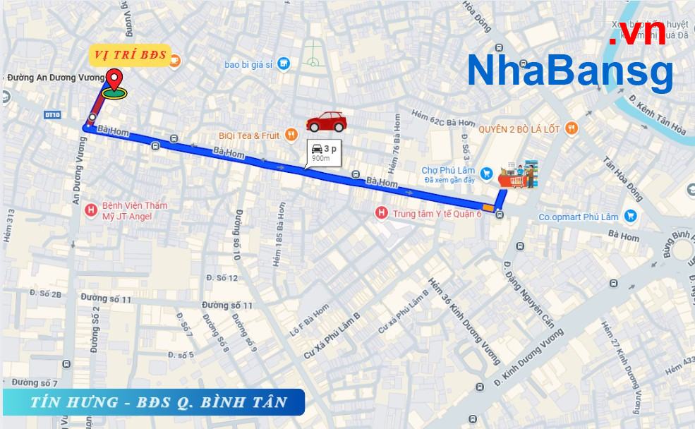 + hẻm ô tô ngay ngã tư An Dương Vương - Bà Hom, gần chợ Phú Lâm, trường học, ngân hàng tiện sinh hoạt hằng ngày.
