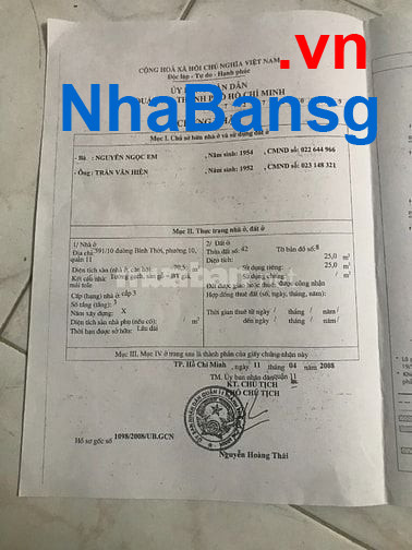 Bán nhà số 591/10 Bình Thới, Phường 10, Q11 đối diện ủy ban nhân dân Quận,