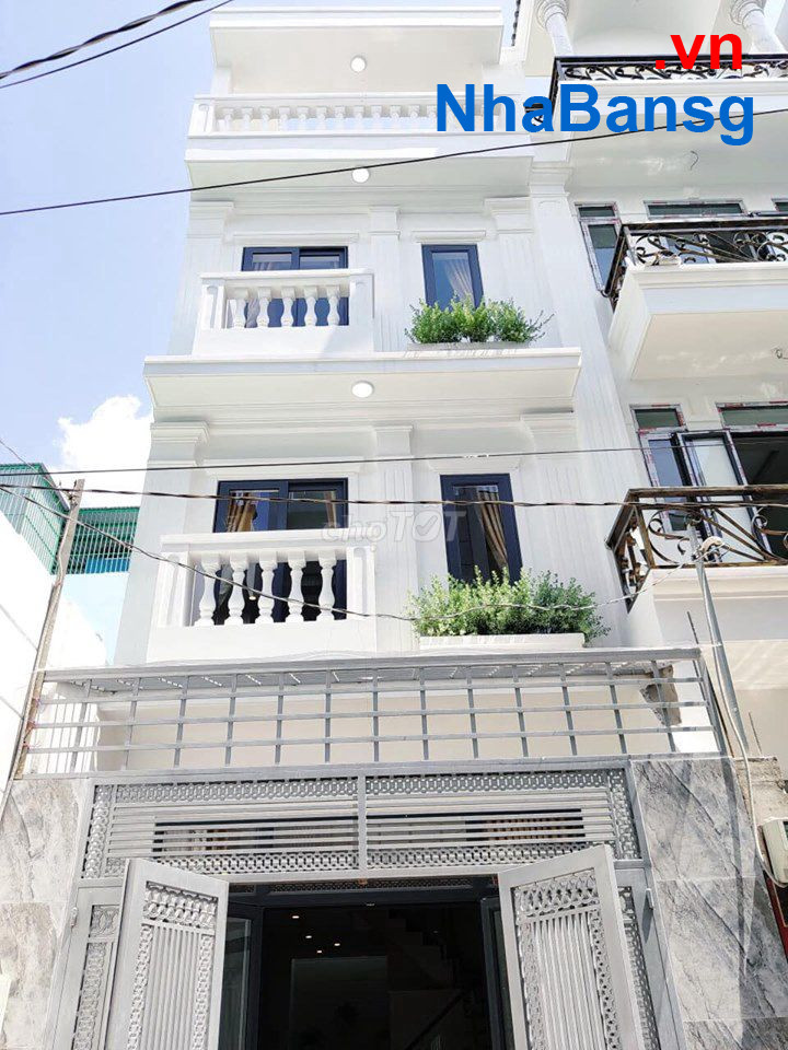 Nhà xây mới 1 trệt 3 lầu + sân thượng. Có 4pn + 5 wc.