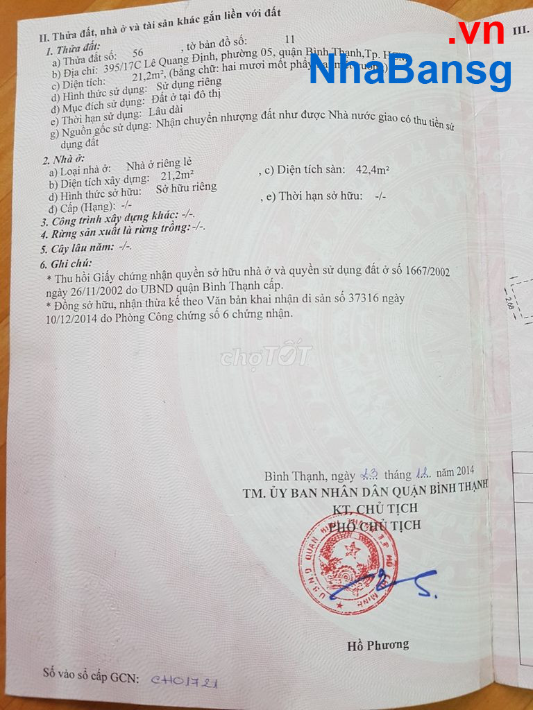 Chính chủ bán nhà 395/17C Lê Quang Định, Phường 5, Quận Bình Thạnh giá 3.2 tỷ